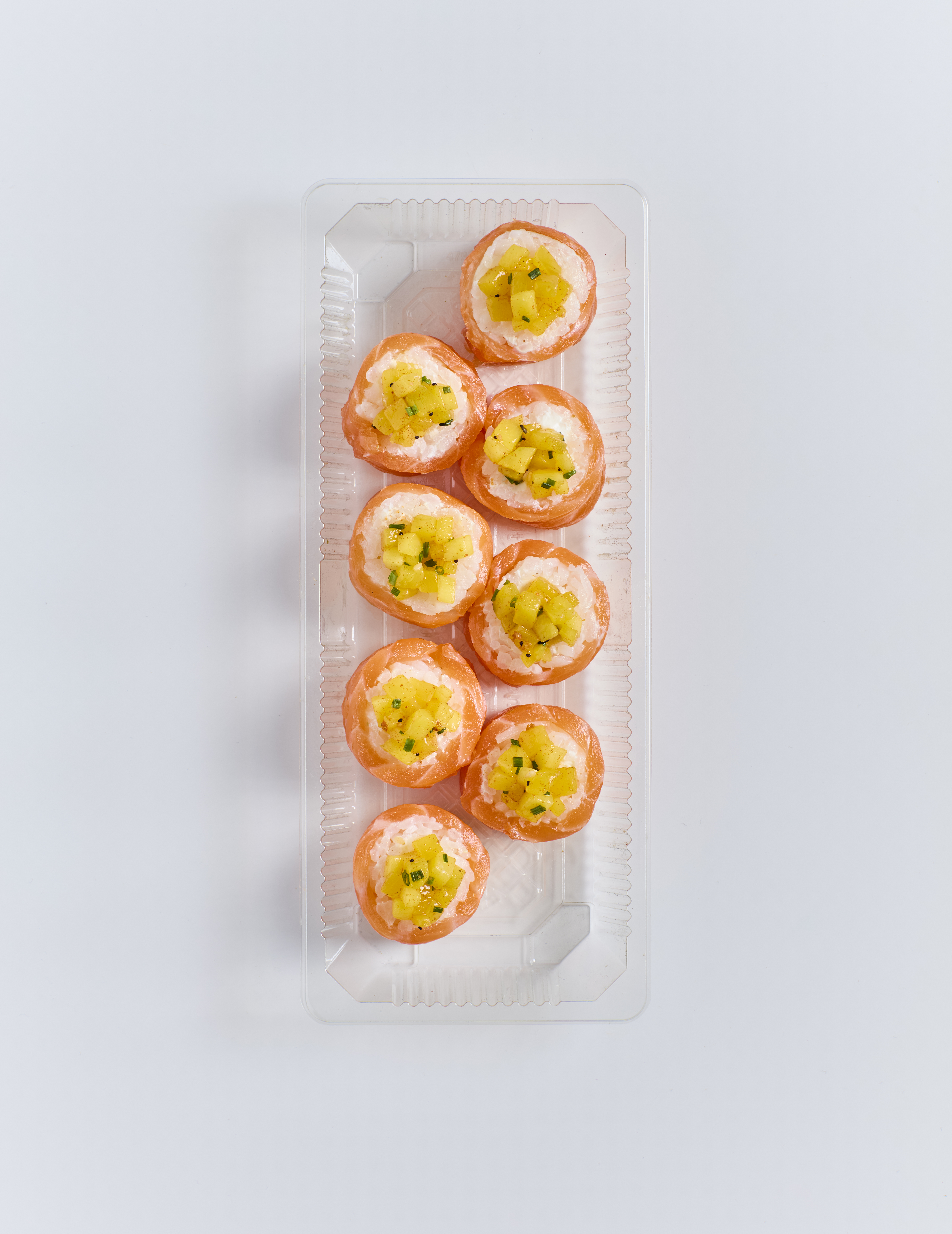Een gedurfde combinatie voor wie graag nieuwe smaken ontdekt. Heerlijke zalm, romige wasabi-roomkaas en een pittige mangosalsa. Elke hap biedt een zoete pittigheid en een zachte, volle smaak.